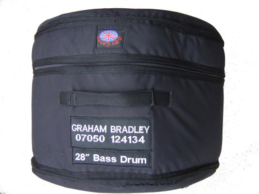 Our standard Bass drum case is a rubust zipped bag that is constructed with high density foam to protect your drum.